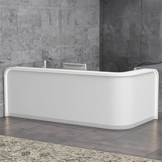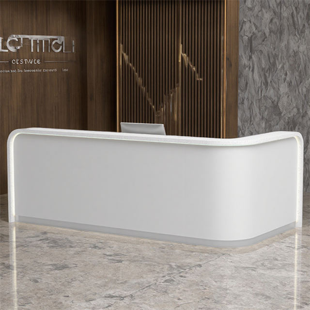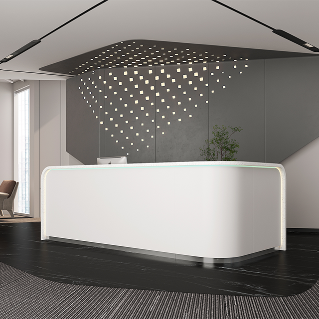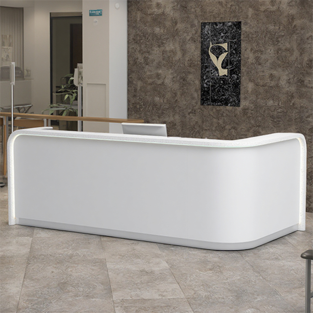 Balcão de recepção de pedra artificial com textura, balcão de recepção de hotel, balcão de serviço, moderno e elegante, curvo