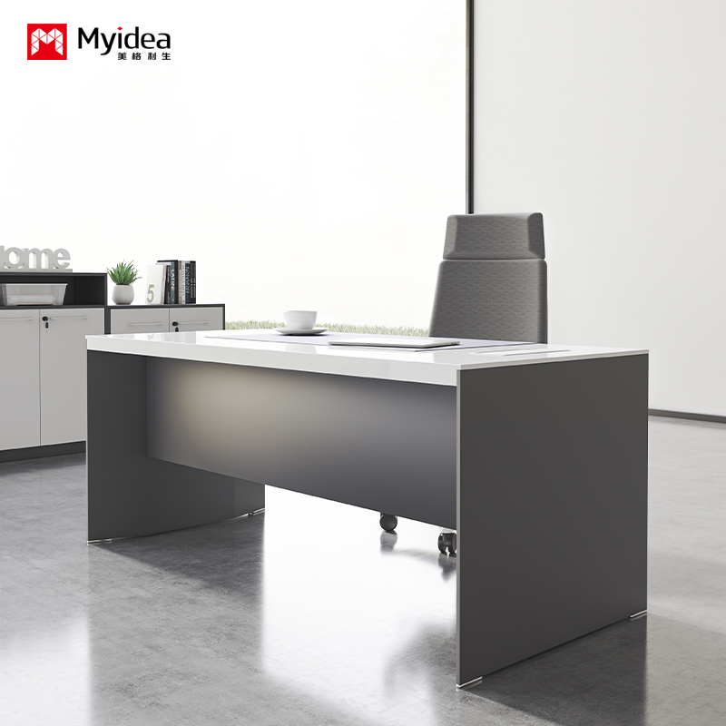 escrivaninha de escritório com processo de pintura branca de cozimento personalizado, mesa de chefe moderna e elegante, móveis de escritório, mesa de computador