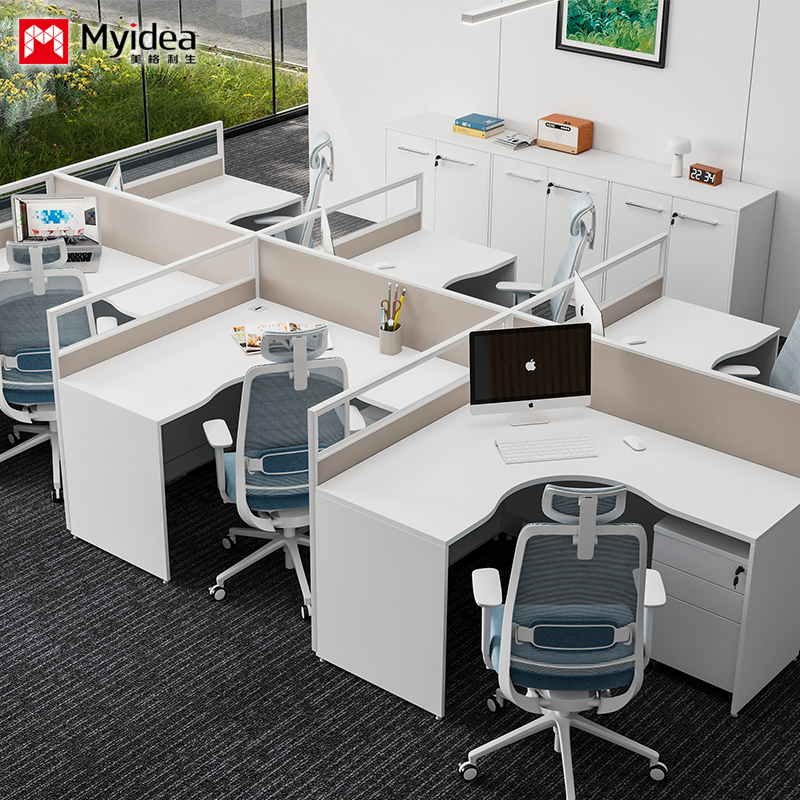 | Destacar: | Escritório de pessoal em forma de L,combinação de mesa de tela moderna,Escritório de cor clara |