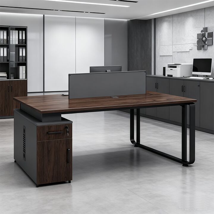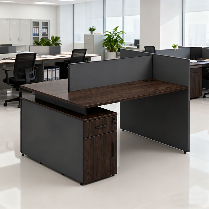 Mesas de Trabalho Modernas em Madeira com Espaço de Armazenamento de Frente um para o Outro Design Autônomo Montagem Fácil